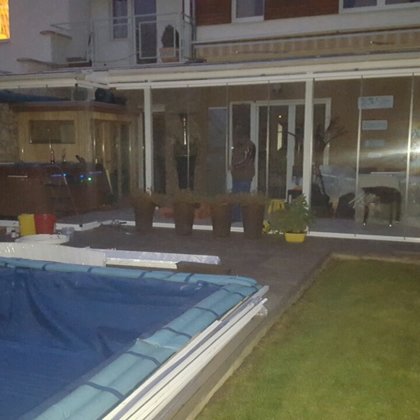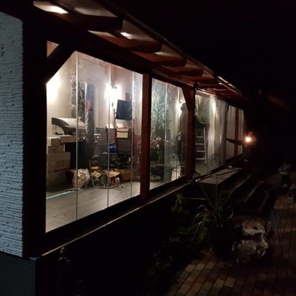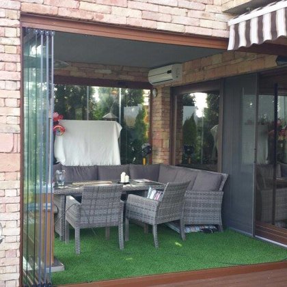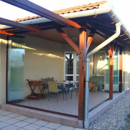 terasz beépítés lapozhaztó / eltolható üvegfal -