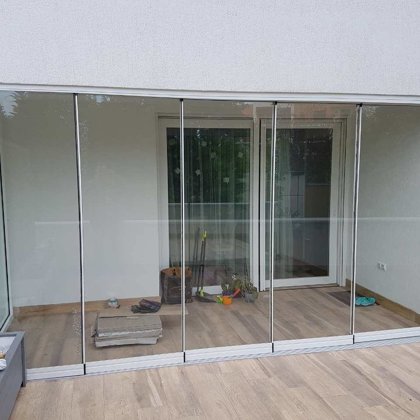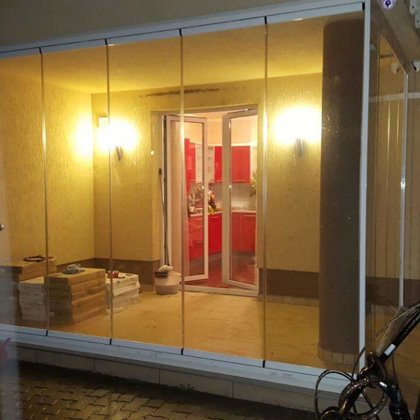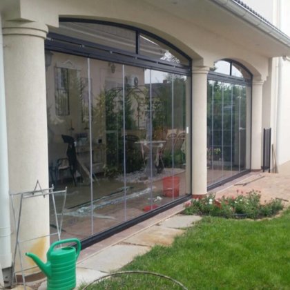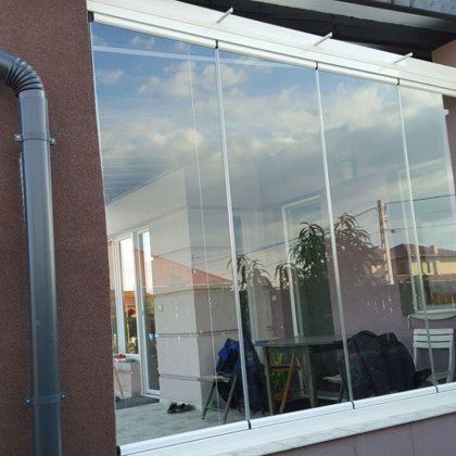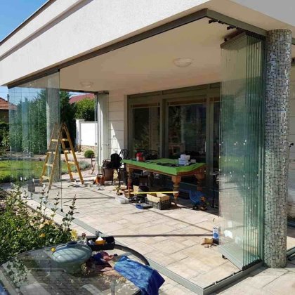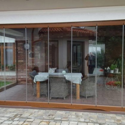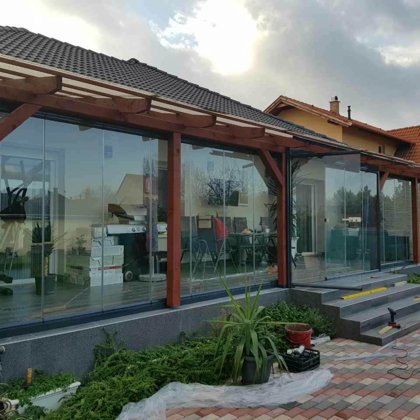 terasz zárás, mobil rendszerű üvegfal -