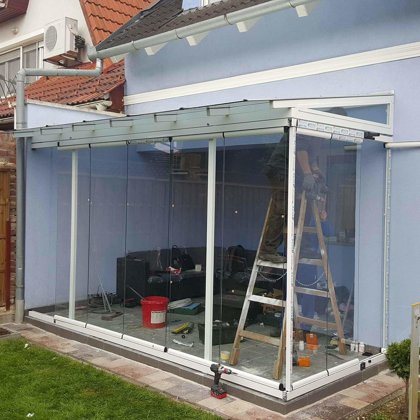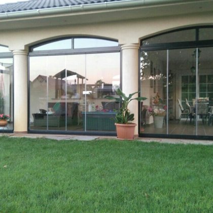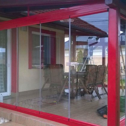 toló rendszerű üvefal, üvegterasz rendszerek -