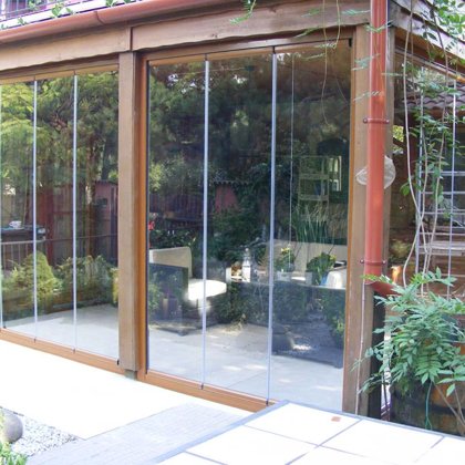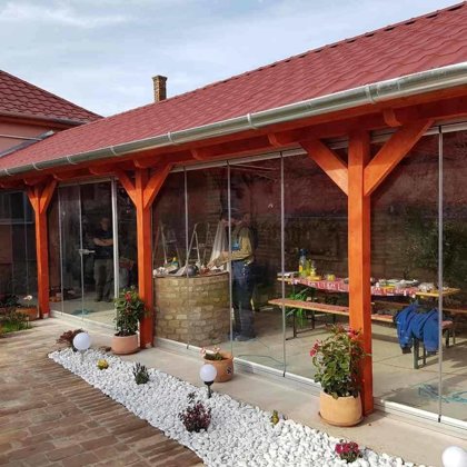 teraszrendszerk, nyitható-zárható üvegfal -