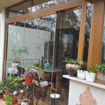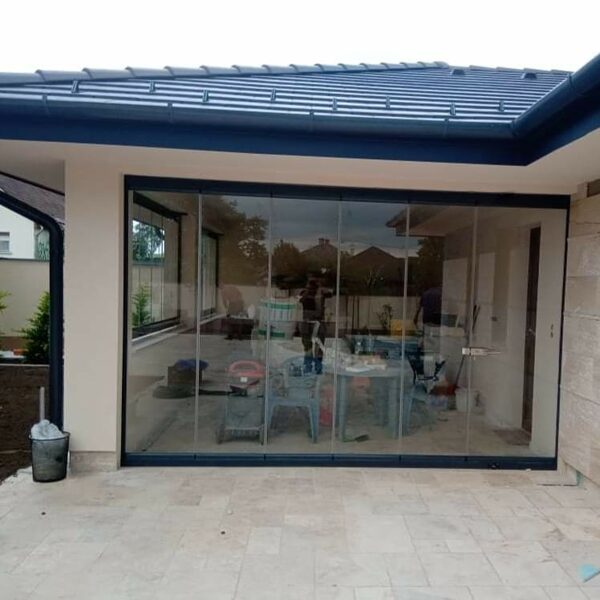 lapozható üvegfal, üveg tolófal, terasz beépítés -
