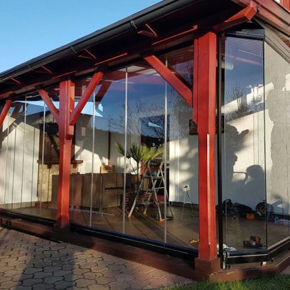 terasz beépítés lapozható üvegfal -