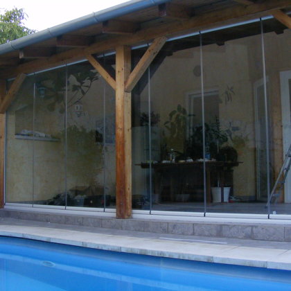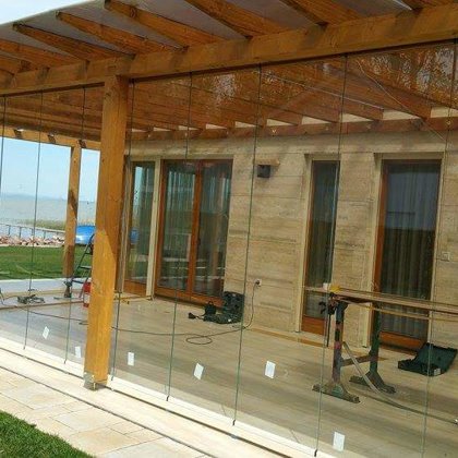 üvegfal, üveg korlát, teraszfedés, pergola, mobilfal -