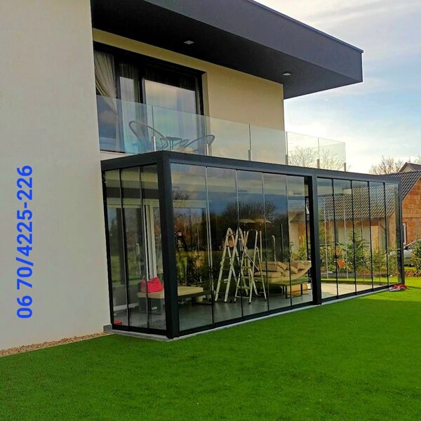 teraszrendszer üvegből, télikert, mobil teraszbeépítés -